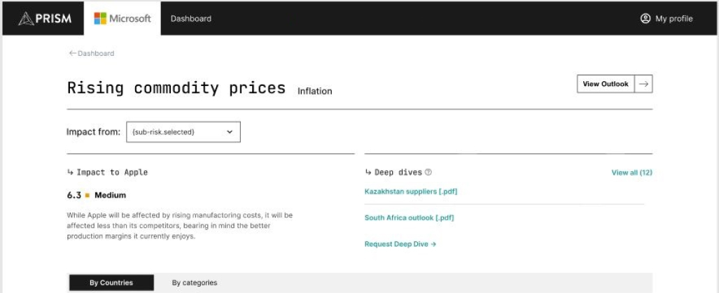 The Client is a risk analysis consulting firm for enterprise companies. As a part of an effort to expand and digitize their consultation services they reached out to us to build a portal in which their clients could easily view and assess global risks that pertain to their businesses. The clients already had a landing page. We were responsible only for the software design.